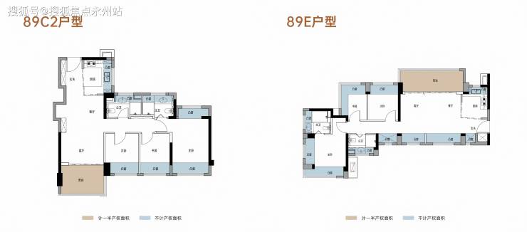 89㎡三房两厅两卫:横厅 / 竖厅双格局设计,LDKB 一体化空间,约 11㎡阔景阳台,全屋多飘窗赠送,得房率超 96%,满足三代同堂需求。