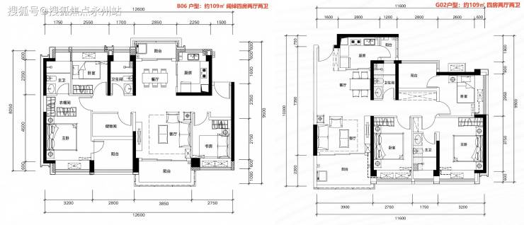 109m²4房2厅2卫,有竖厅和南北通户型,双阳台设计,客厅开间3.9米,都有阳台改卧室以及增加客厅进深改造,赠送后得房率在93-95%左右。