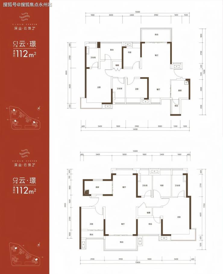 112-128㎡ | 3-4 室 2 厅 2 卫:南北通透双阳台,主卧套房设计,总价约 526-601 万。