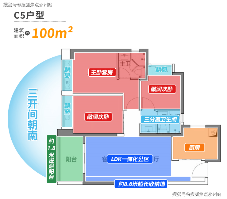 可以实现三代同堂共享天伦之乐,也可以成为孩子独立成长的私密空间,室室飘窗,带来充足光照时长,观景采光两相宜。