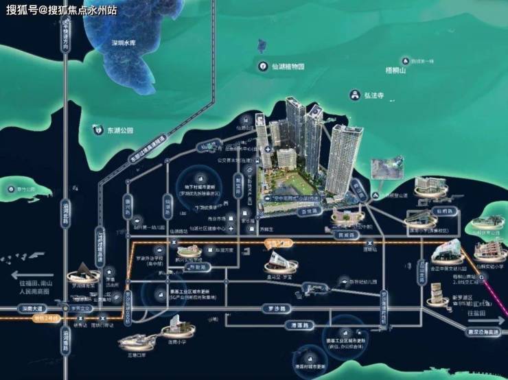 项目所在地罗湖莲塘坐拥罗湖、文锦渡、莲塘三大口岸,其中项目距离莲塘口岸仅两站地铁。莲塘依托莲塘口岸与香港北部都会区连接,并按照《罗湖区产业发展“十四五”规划》“一主两区三带”的发展格局,承接国际消费服务核心区和文化生态休闲区及大梧桐新兴产业带的城市功能,其区域定位和价值的重要性凸显。