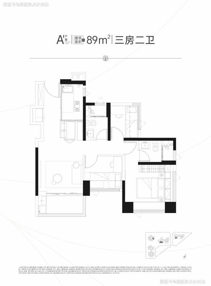 89㎡舒适三房两卫:主卧套房设计,独立卫浴 + 观景飘窗,兼顾私密与采光