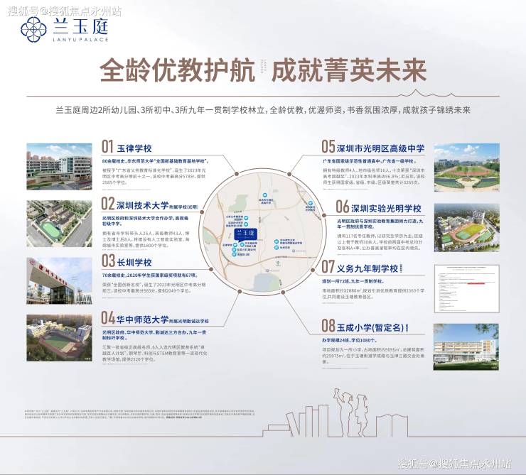 初中学区:深圳技术大学附属学校(光明)(步行100米可达)、玉律学校初中部(2024年录取积分33.4分)、华中师大附属勤诚达学校初中部等。