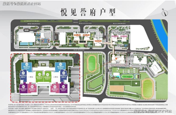 悦见倾湖誉府:2栋一单元和二单元,3梯5户,总层高44层,建面约88㎡三房一卫,96-99㎡三房两卫,102㎡三房两卫