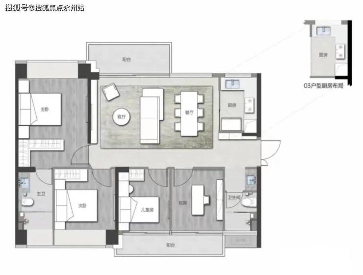 方正全明四房,美好生活一步到位,客餐厨一体化设计,品自在人生格局;