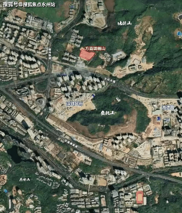 项目地址位于深圳市南山区桃源北环大道北侧塘朗山南麓,邻近深云地铁站。项目大体被山体包裹,西侧和南侧分别临近南坪快速路、北环大道两条城市快速路,其东侧还将建设侨城东路北沿线(规划中),所处片区相对割裂存在。
