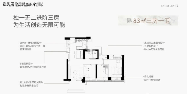 83㎡三房一卫:独一无二进阶三房,为生活创造无限可能