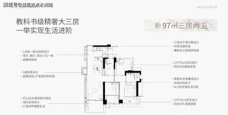 97㎡三房两卫:教科书级精奢大三房,一举实现生活进阶