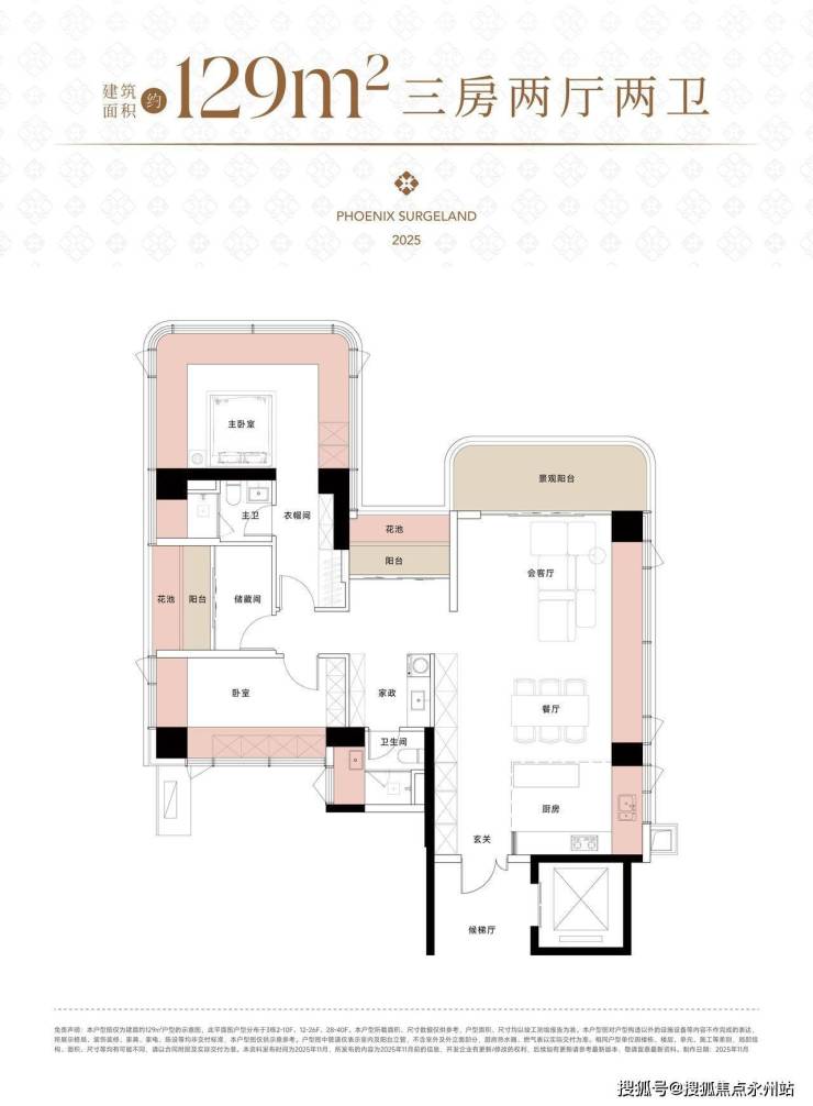 129㎡四房两厅两卫:东北朝向聚焦一线梧桐山景,客餐厅开间5.1米,总面积达40-50㎡,连接5-8㎡景观阳台。主卧同样配备270°全景舱与套房设计,三间次卧面积均在10-15㎡,空间分配均衡。相较于127㎡户型,该户型更侧重景观面的纯粹性,适合偏爱山景的改善家庭,折后总价552万起。