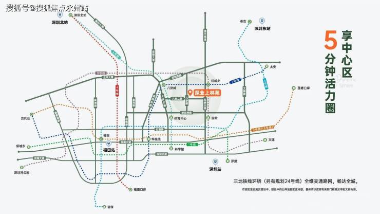 20分钟内抵达城市枢纽:福田高铁站、深圳北站、深圳站、福田口岸、皇岗口岸,出行方便。