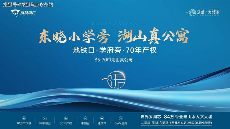 罗湖「京基•天珺府」,东晓小学旁,湖山真公寓,建面约35-70㎡湖山真公寓,70年产权公寓,可积分入学,民水民电,通燃气带阳台,层高3.6米,计划2026年3月精装交付。
