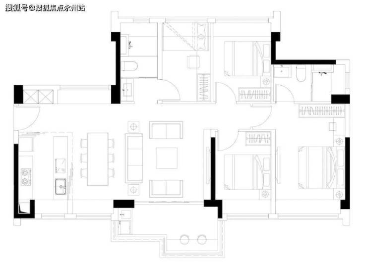 82㎡以上户型的阳台是这样L型的,这样做的目的同样是节省空间