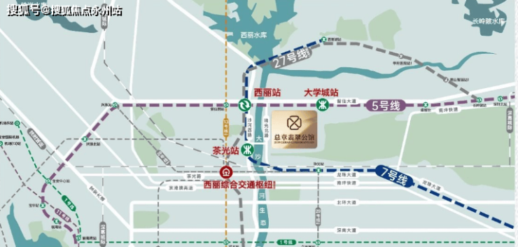 交通:项目距离地铁西丽站约800米(根据百度地图路径测得),当前为地铁5号线和7号线的双线换乘站;同时,可通过项目就近的沙河西路、留仙大道便捷连接周边板块,整体交通配套已较为成熟、稳定。