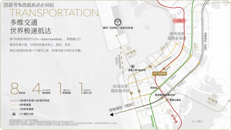交通方面,项目距离5号地铁线“妈湾站”约550米,步行5分钟即可到达,1站到铁路公园站可换乘15号地铁线,深惠城际“前保站”距离约1公里,便捷通行,毗邻听海大道,快速通达南山,福田,宝安。