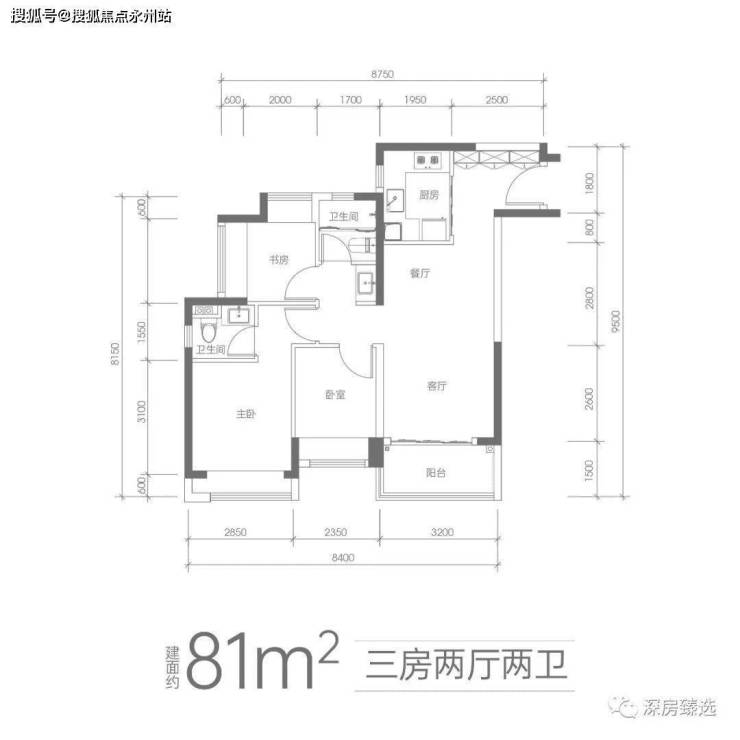 这种介于单卫和双卫之间的存在,近期首次出现在了润晖府二期的81㎡户型里。