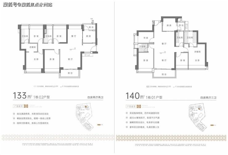 140㎡的4房2厅3卫,共有3套。
