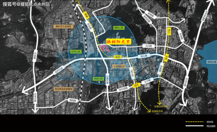 项目独树阳光里,就在项目的北面,对解决水贝国际珠宝生态创意城区成千上万的企业、高管的住房需求是有帮助的。因此,项目的价值也就显现出来了。