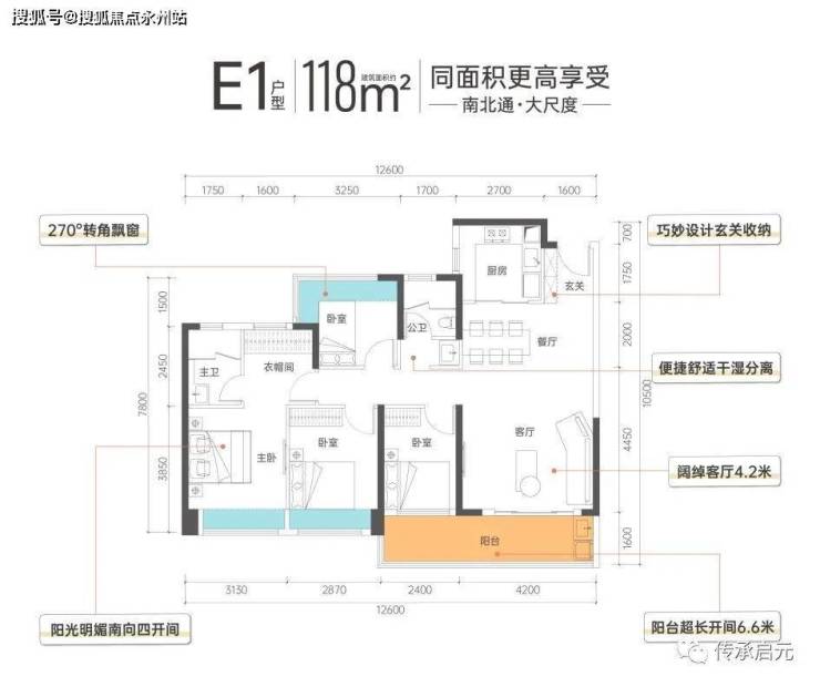 采光与通风,决定居住的舒适度。传承启元建面约70㎡三房打造“次卧飘窗-生活阳台-餐厅飘窗-主卧飘窗”四开间大面宽布局,大尺度收纳阳光入室,保障室内全天通透舒居,让生活的每一处都充满阳光。