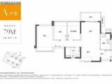83㎡三房两厅一卫(竖厅设计)得房率75.64%(不含赠送),实际使用率约87%(含约8㎡赠送面积)总价区间:289-318万(折后),单价3.48-3.75万/㎡
