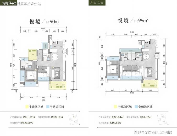 使用率:南山中心区稀缺的96%使用率,90㎡三房实际使用面积媲美传统110㎡户型,143㎡四房对标183㎡产品,赠送面积达20㎡,对比周边二手提高约8 - 10%使用率。