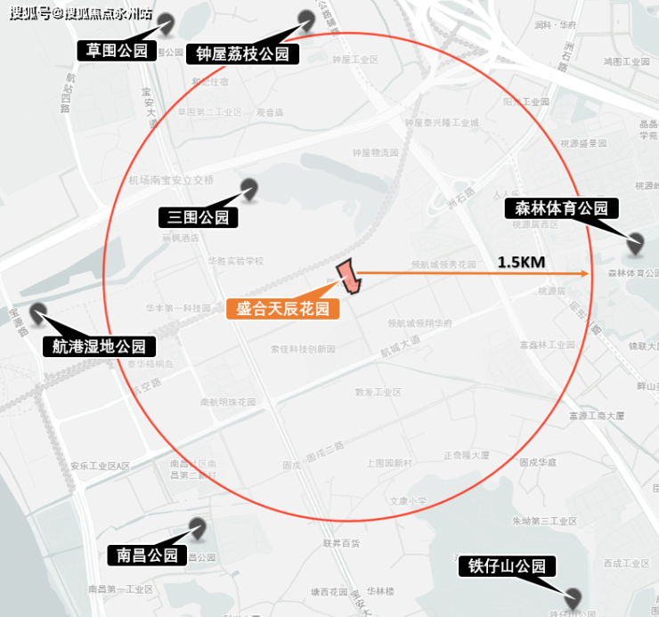 文娱:项目周边缺少具备便利性的休闲娱乐(市政公园)配套,项目1.5公里范围内只有一个三围社区公园,规模较小。日常休闲娱乐如要享受优质市政公园或自然生态公园需要到2公里范围内的桃源居森林体育公园或者铁仔山自然生态公园。另外项目2公里范围内还一个航港湿地市政公园在建。