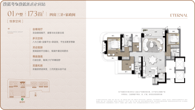 超高使用率:新规设计下所有户型使用率超 90%,部分超 95%,空间价值显著提升。92㎡三房实际使用面积接近传统 100㎡户型,173㎡四房可媲美市场 200㎡大平层。