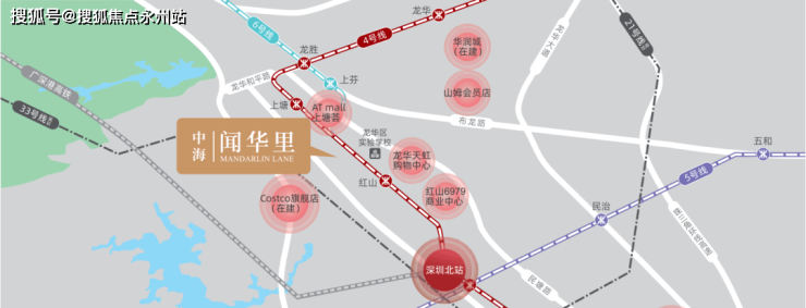 地铁4号线、6号线、33号线(规划中),快速通往全城。深圳北站联通湾区都市圈。