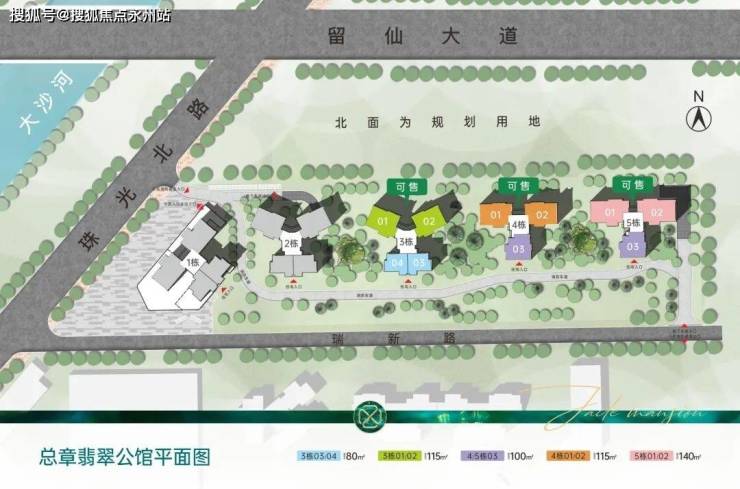 总章翡翠位于大沙河东侧,珠光北路和留仙大道交汇处的南侧,其地块西面紧邻珠光北路,东面触及塘朗山山麓,南面为规划中的城市道路,项目总建筑面积约81761.81㎡,主要由5栋百米超高层住宅塔楼及商业配套组成,整体为“一”字摆开型,且为点式布局,在保证建筑间距的前提下,塔楼布局形态错落有致,景观视线相互错开,增加了户型通透感。