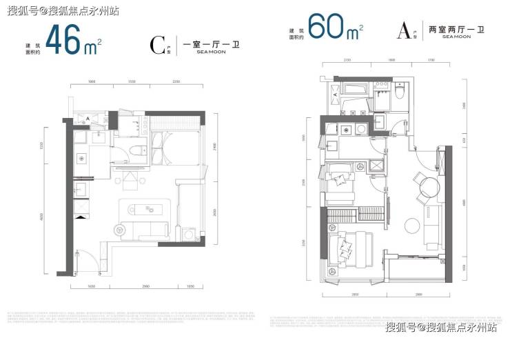 约44㎡:南向瞰海,291—371万