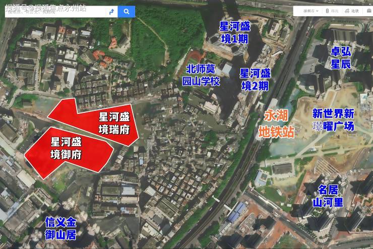 星河盛境3期,位于龙岗区横岗园山街道安红路与永湖路交汇处,项目前身为“龙岗区园山街道保安窝肚村城市更新单元”,南侧是信义金御山居(在建),西北侧约200米是信义玻璃厂,3号地铁线“永湖站”距离约400米。