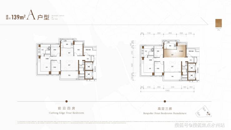 约139㎡户型:分为A/B两款,均支持三房与四房的自由切换。A户型为竖厅南北通透