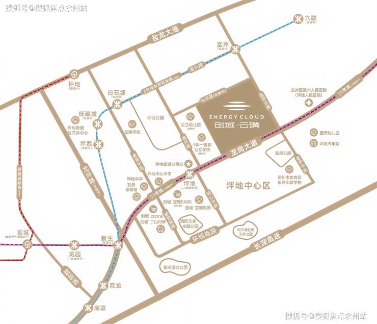 创城云璞花园,位于坪地街道龙岗大道与富坪路交汇处西北侧。