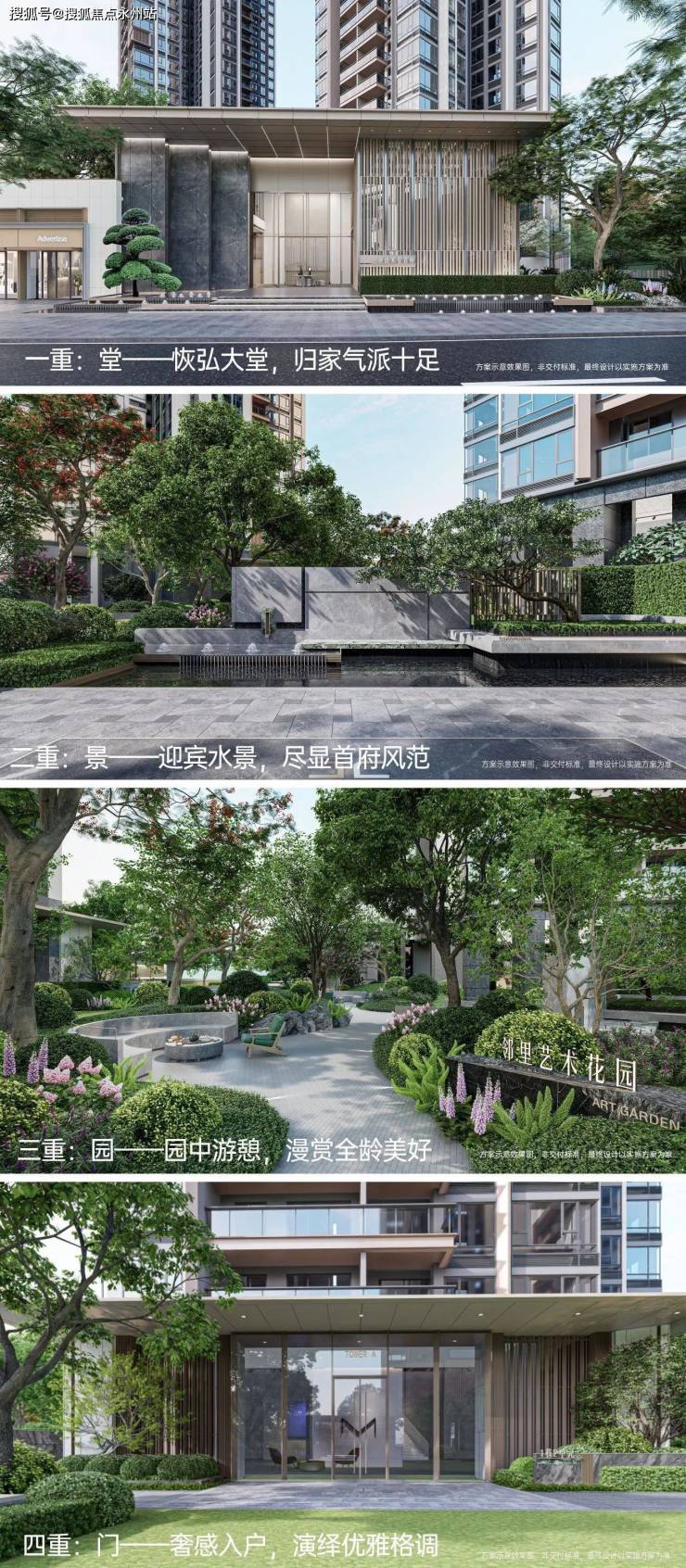 【超配礼序·四重归家】匠造四重归家礼序,从“恢弘大堂—迎宾水景—邻里艺术花园—奢感入户”定制沉浸式归家。