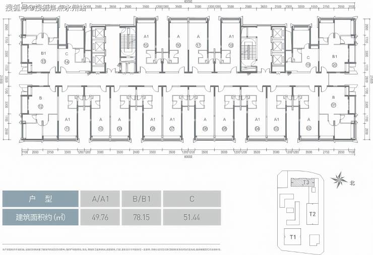 户型面积:490-500-2170㎡ 一层4户2000-2100