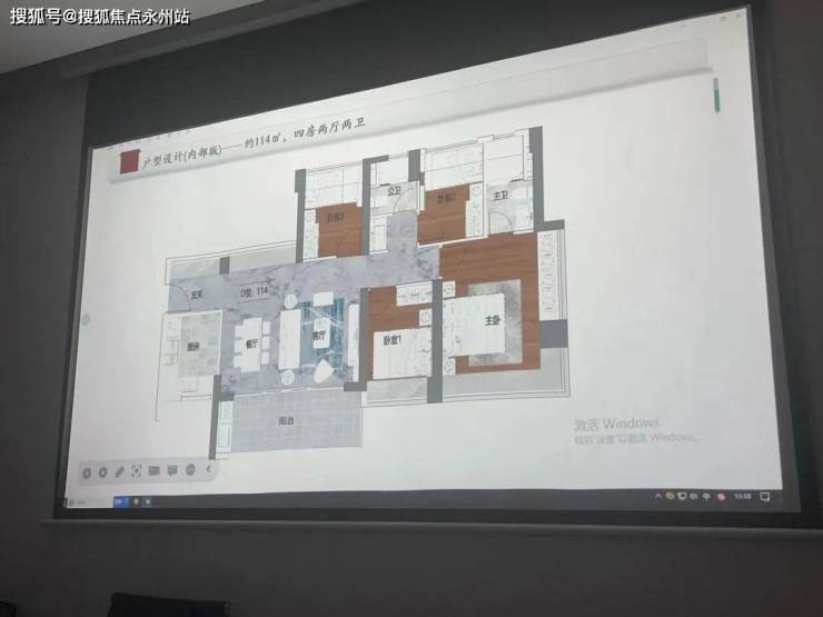114㎡的4房2厅2卫,设计的是横厅南北通透格局,三开间朝南,全屋飘窗设计,主卧270度环幕视野,L型厨房,客卫三段式分离设计。