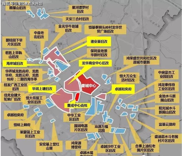 润、海岸城、鸿荣源等众多名企城市更新项目。中洲商业中心旧改总建面约74万m²(现已拆除完毕)、德业基旧改总占地134万m²,220亿元打造龙华新商圈中轴央城(已处在前期规划中)、龙华海岸城旧改总建面超100万m²,约南山海岸城的两倍(部分地块已拆除完毕)。
