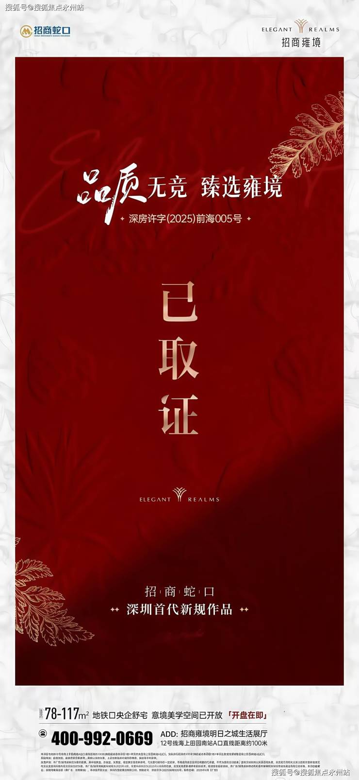 深圳宝安招商会展湾雍境二期(招商雍境名邸)已于 2025 年 4 月 30 日取得预售许可证,并于5月3日正式开盘。