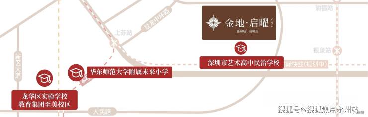 项目周边形成“幼儿园-小学-初中-高中”全龄段教育体系,公办学校为主,优质资源集中,学区稳定,是教育刚需家庭的优选,核心亮点:龙华实验学校学区、多所公办优质学校环绕,无需额外等待学校规划。