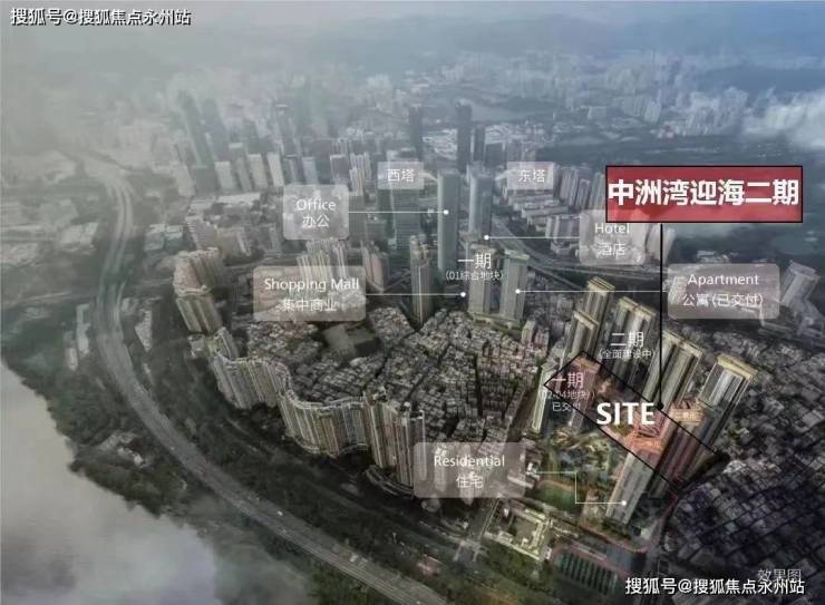 整个中洲湾总占地面积约9.7万㎡,规划总建面约126万㎡,分四期开发,业态包括:住宅建面约56万㎡、公寓与超甲级写字楼21.42万㎡、精品酒店2.18万㎡、Mall及主题商业街区约16万㎡。