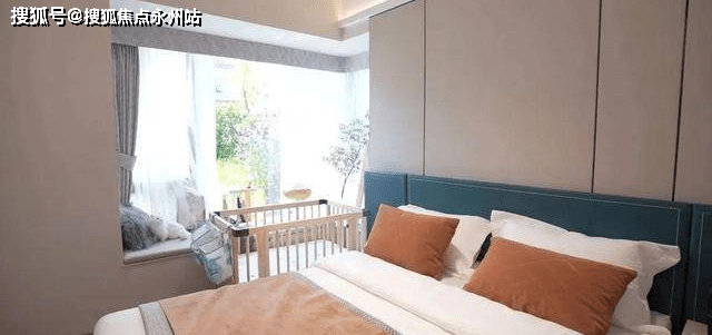 5、全明卧室,卧室里的飘窗设计不仅能引光入室,视野更显宽阔,还能多维赏景或装饰成休闲区、工作台、梳妆台等,带给居住者意想不到的舒适与愉悦。
