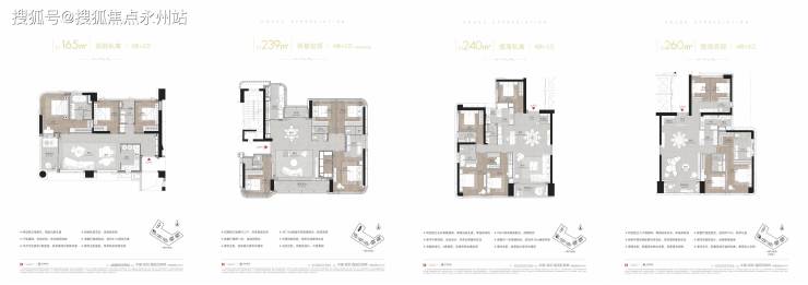 约260-290㎡4房3卫户型,总价约2370-3610万;