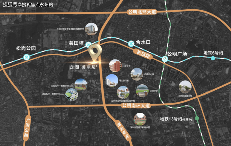 3公里10大优质学校:1公里内,5大优质学府环绕。咫尺54班九年一贯制学校(规划中)、60班九年一贯制学校(规划中),近揽光明区高级中学(集团)科育学校、深圳市光明区理创实验学校。3公里内,深圳外国语学校、深圳公明中学等精英学府在侧。全龄高质教育体系,一站护航。3公里内,共10所优质学府环绕。