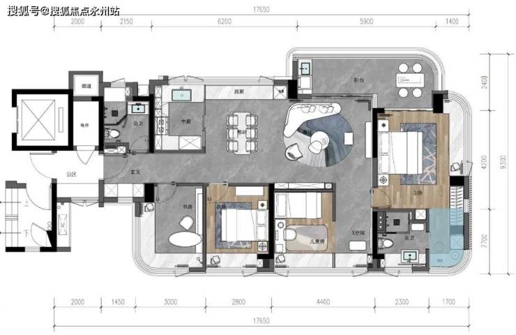 各户型均做到了“半包围式”飘窗赠送:“主卧+衣帽间”转角大飘窗设计,可利用一部分飘窗做衣柜扩大卧室使用面积。次卧、儿童房、卫生间、甚至厨房都有飘窗赠送,给购房者预留了扩展空间。