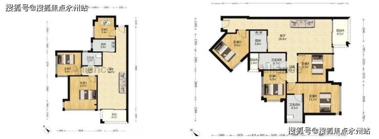 89㎡的4房2厅2卫(7栋B座01.06户型及7栋C座),设计的是横厅南北通透格局,客厅3.6米开间,主卧双飘窗南北通,有2个卧室是落地窗,L型厨房,得房率100%,阳台主朝西北向或北向,看园林景观。