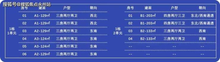 推出建面约124㎡-203㎡三至四房,其中1栋1单元产品为建面约124㎡三房两厅两卫,约129㎡三房两厅两卫;2单元产品为建面约133㎡三房两厅两卫,约203㎡四房两厅三卫。