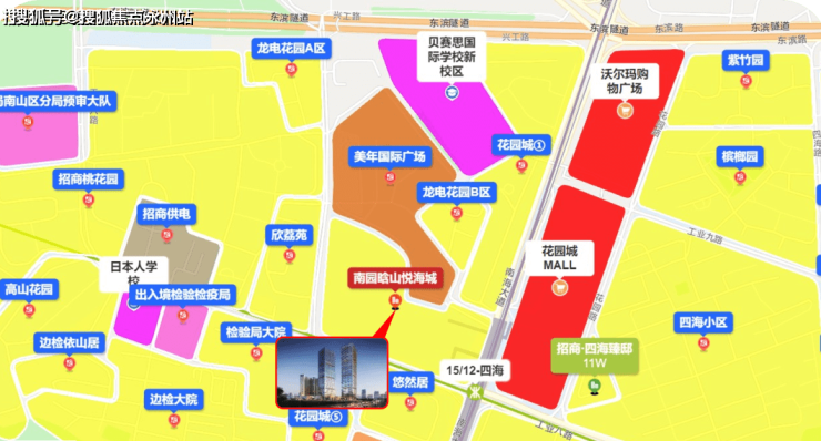 晗山悦海,项目位于深圳市南山区招商街道蛇口片区,桃花园社区南海大道与工业八路交汇处西北侧,是12号线四海站F/E出口的地铁口物业,属于出小区就到地铁的那种。