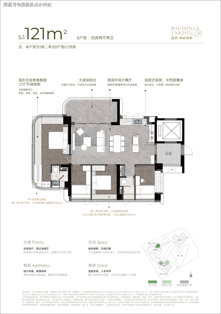 前海唯一新规住宅|自贸·湾啟紫荆府:92-100%得房率+独立电梯厅,111-142㎡三至四房,8.6万/㎡起,2027年3月交付