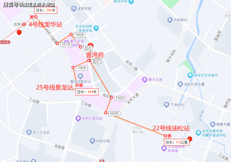 到地铁4号线【龙华站】步行距离大约700多米,也非常方便。