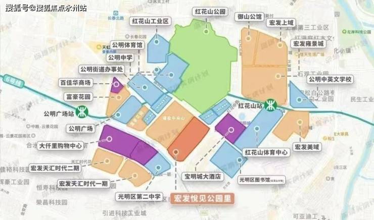 以宏发悦见公园里为圆点,约700米的生活半径里,地铁站、学校、商场、公园/图书馆/体育中心,都可以散步到达,具有较强的居住舒适性。