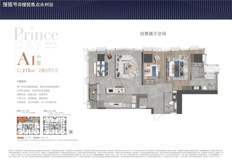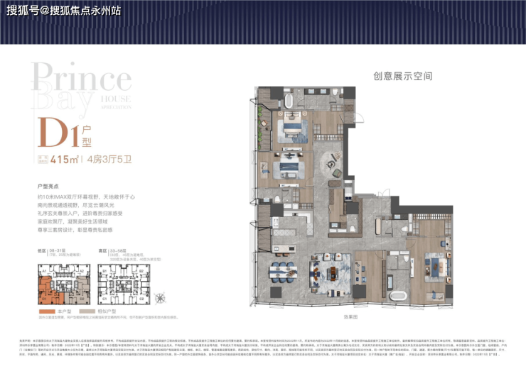 大平面大尺度定位,层高约3.6米,横厅设计确保最大化观景面,全户型纵享环幕视野。项目打造主力建面约215-415㎡纯粹品质公寓共191席,顶层为建面约1270㎡公寓产品。